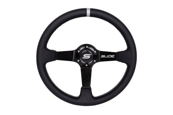 Kierownica SLIDE to wysokiej jakości akcesorium przeznaczone dla entuzjastów motoryzacji, którzy pragną poprawić ergonomię, komfort oraz precyzję prowadzenia swojego pojazdu. Dzięki swojej sportowej konstrukcji i estetyce, kierownice SLIDE doskonale sprawdzą się w pojazdach przygotowanych do jazdy na torze. Ta wersja kierownicy wyróżnia się wyjątkowym wykonaniem z naturalnej skóry, co zapewnia pewny chwyt i komfort użytkowania. Dodatkowo, subtelny pasek na obręczy nie tylko dodaje eleganckiego, sportowego charakteru, ale także ułatwia precyzyjne określenie centralnej pozycji kierownicy, co zwiększa kontrolę nad pojazdem.