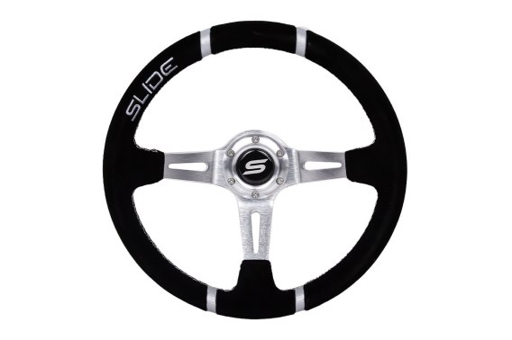 Kierownica SLIDE to wysokiej jakości akcesorium przeznaczone dla entuzjastów motoryzacji, którzy pragną poprawić ergonomię, komfort oraz precyzję prowadzenia swojego pojazdu. Dzięki swojej sportowej konstrukcji i estetyce, kierownice SLIDE doskonale sprawdzą się w pojazdach przygotowanych do jazdy na torze. Ta wersja kierownicy wyróżnia się wyjątkowym wykonaniem z zamszu, co zapewnia pewny chwyt i komfort użytkowania. Dodatkowo, podwójne srebrne paski na obręczy nie tylko dodają sportowego charakteru, ale także ułatwiają precyzyjne określenie centralnej pozycji kierownicy, co zwiększa kontrolę nad pojazdem.