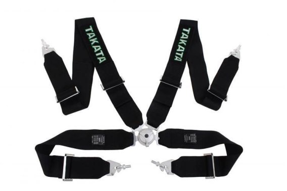 Pasy bezpieczeństwa Takata replica sportowe 4-punktowe, wykonane z tkaniny i częściowo z tworzywa sztucznego.