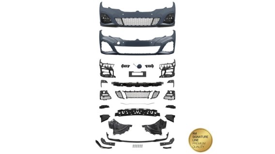 Przedni zderzak sport PDC Lampy przeciwmgielne dedykowany jest dla BMW 3 (G20) Sedan (G21) Touring produkowanych w latach 2019-2022. Zderzak jest w kolorze niepomalowanym, wykonany z tworzywa PP o powierzchni podkładowej. Jest idealny zarówno do wersji Sedan, jak i Touring. Dzięki sportowej wersji zderzaka, nadajesz swojemu samochodowi nowy, agresywny wygląd. Zderzak jest wyposażony w miejsca dedykowane do montażu lamp przeciwmgielnych, co dodatkowo zwiększa bezpieczeństwo podczas jazdy w trudnych warunkach atmosferycznych. Produkt dedykowany jest dla samochodów z systemem Park Distance Control (PDC), co ułatwia manewrowanie i parkowanie. Jednakże nie jest kompatybilny z pojazdami wyposażonymi w system wspomagania jazdy, zatem należy zwrócić uwagę na odpowiednie wyposażenie samochodu. Jeśli jesteś posiadaczem BMW 3 z roku produkcji 2019-2022 i chcesz podkreślić sportowy charakter swojego samochodu, ten zderzak jest doskonałym wyborem. Zadbaj o bezpieczeństwo i wygląd swojego pojazdu dzięki dedykowanym lampom przeciwmgielnym oraz sportowemu designowi zderzaka.Parametry: