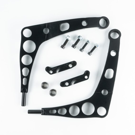 Dla E30 (4×100) adaptery wykonane są ze stali konstrukcyjnej. Wahacz jest cięty laserem i posiada precyzyjnie obrobione otwory pod sworznie i mocowanie stabilizatora (zalecamy jego montaż dla lepszego prowadzenia samochodu w poślizgu, szczególnie gdy zawieszenie nie jest "zbetonowane").